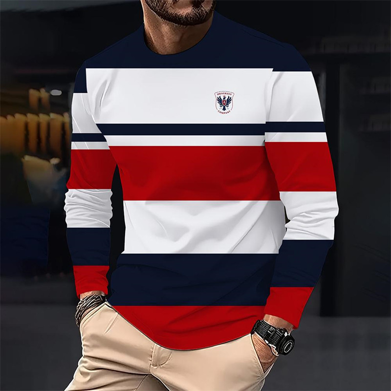 Camiseta Masculina Listrada Monocromática Estampada Outono 3D Impressa casual Manga Comprida Harajuku Relaxada E Respirá