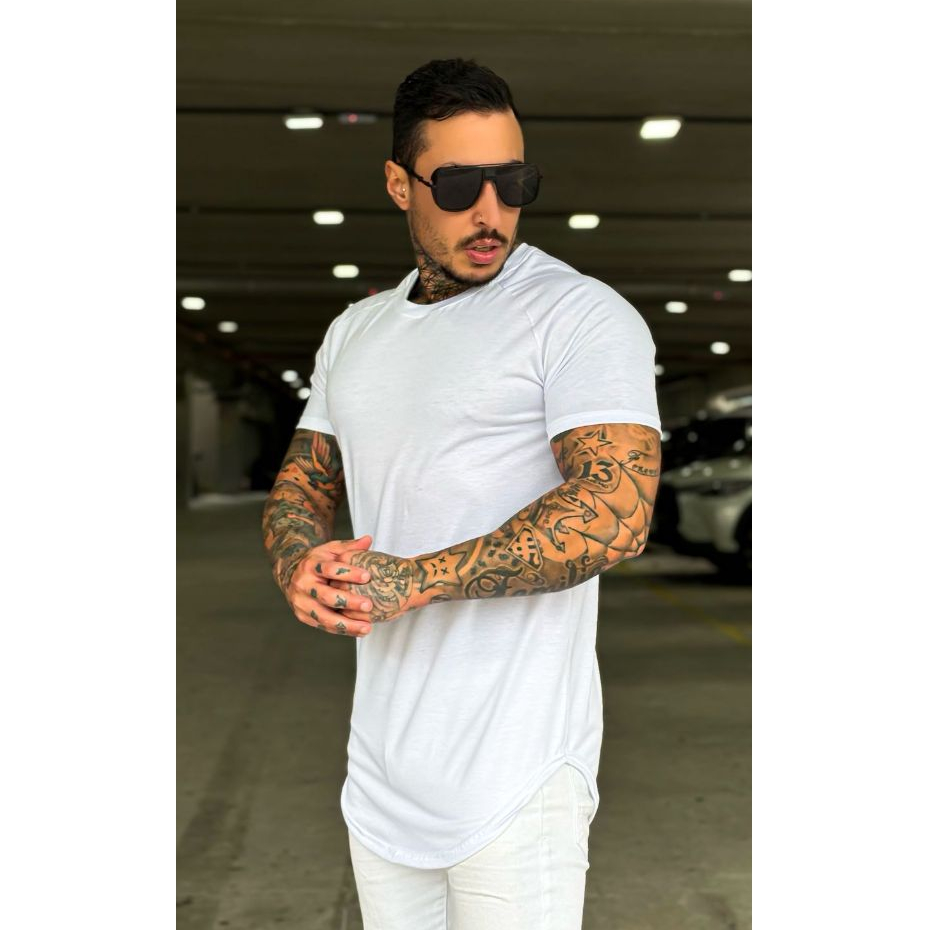 Camiseta Masculina Longline Premium Básica Lisa Moda Casual