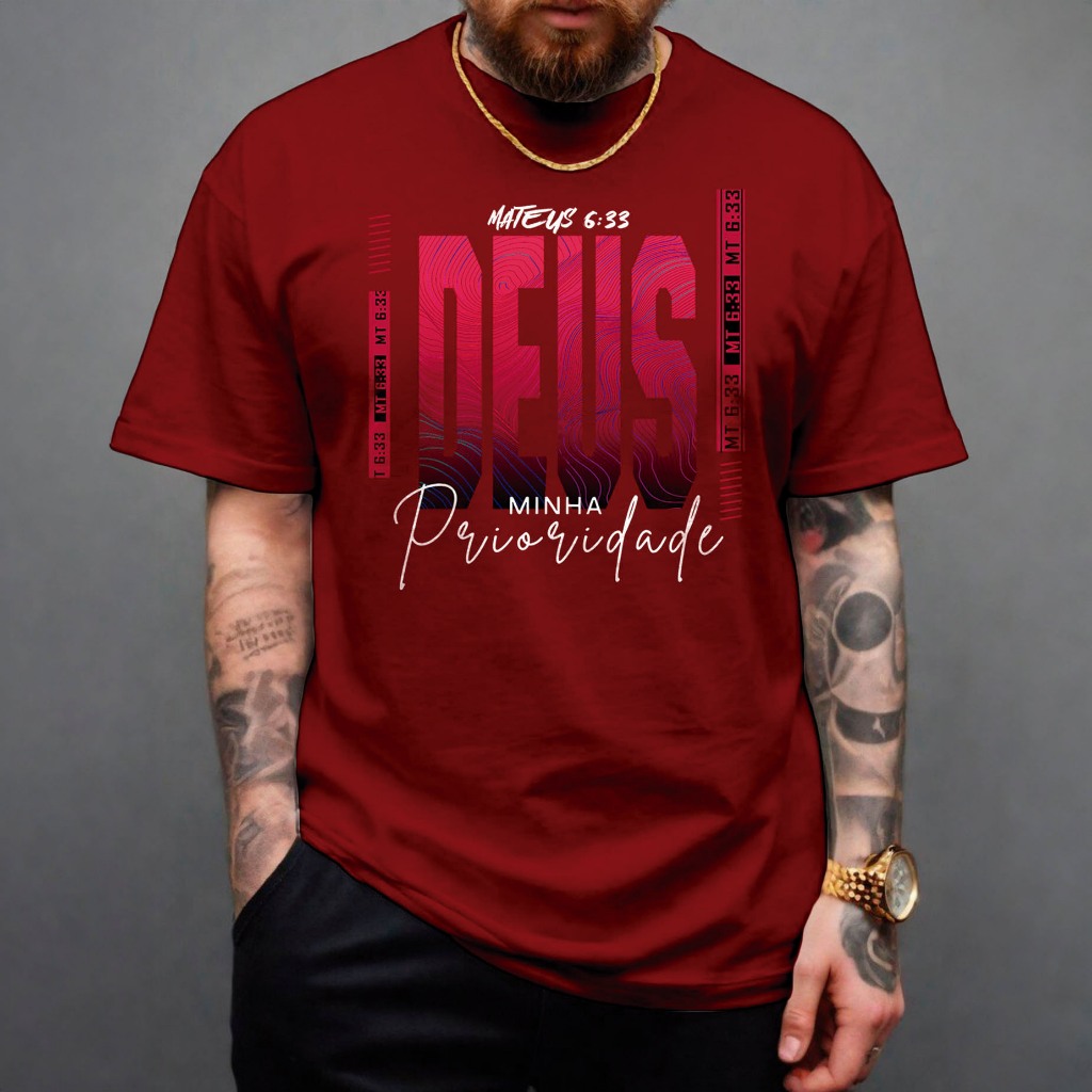 Camiseta Masculina Moda Evangélica Deus Prioridade Jesus Vive Blessed Camisa 100% Algodão