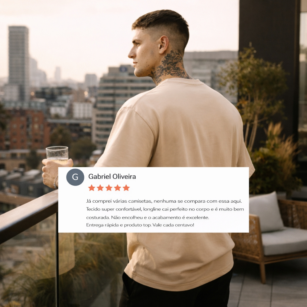 A Camiseta Masculina Oversized Longline é ideal para quem busca conforto, estilo urbano e caimento moderno. Com modelagem oversized e comprimento longline, ela proporciona um visual atual e versátil, perfeita para o dia a dia, rolês, viagens e composições streetwear. Confeccionada em 100% algodão fio 30.1, possui toque macio, ótima respirabilidade e excelente durabilidade. A gola redonda reforçada garante melhor acabamento e maior resistência ao uso e às lavagens. Somos fabricantes, garantindo controle de qualidade em cada detalhe da peça. 🔹 CARACTERÍSTICAS DO PRODUTO - Tecido: 100% Algodão Fio 30.1 - Modelagem: Oversized - Comprimento: Longline - Estilo: Streetwear / Casual - Gola: Redonda reforçada - Estampa: Lisa - Conforto: Alto Origem: Fabricação própria 📏 DICAS DE TAMANHO Modelagem oversized (mais larga que a tradicional) Caso prefira um caimento mais ajustado, escolha um tamanho menor 👉 Recomendamos conferir a tabela de medidas antes da compra. 🧼 CUIDADOS COM A PEÇA - Lavar à mão ou na máquina em modo delicado - Não usar alvejante - Secar à sombra - Passar do lado avesso