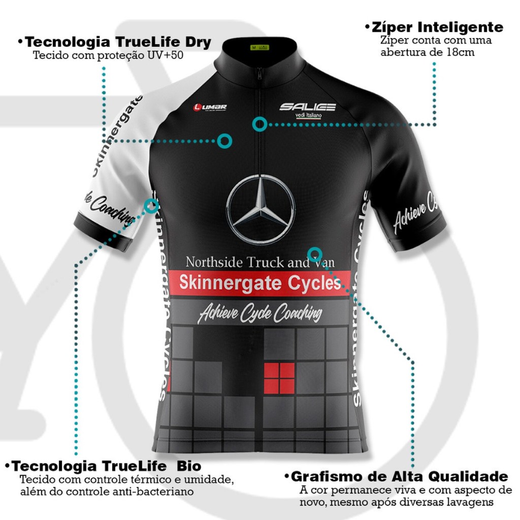 Camiseta Masculina para Ciclismo MTB Proteção UV Tecido Dryfit Mercedes Benz