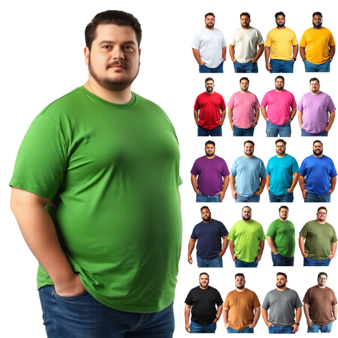 Camiseta Masculina Plus Size 100% Algodão Penteado Várias Cores