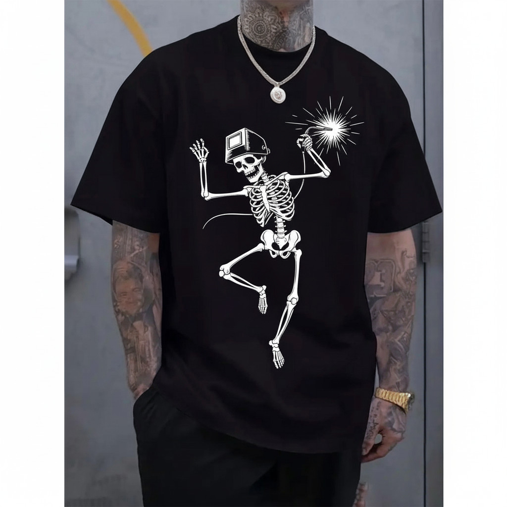 Camiseta Masculina Plus size Esqueleto Soldador Leve Básica Oversized 100% Algodão