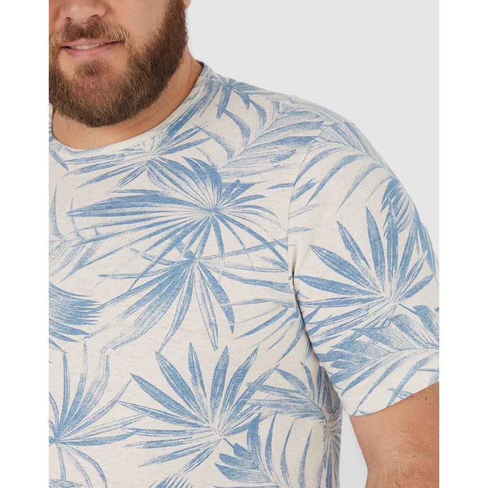 Camiseta Masculina Plus Size Estampa Folhagem Em Malha Linho