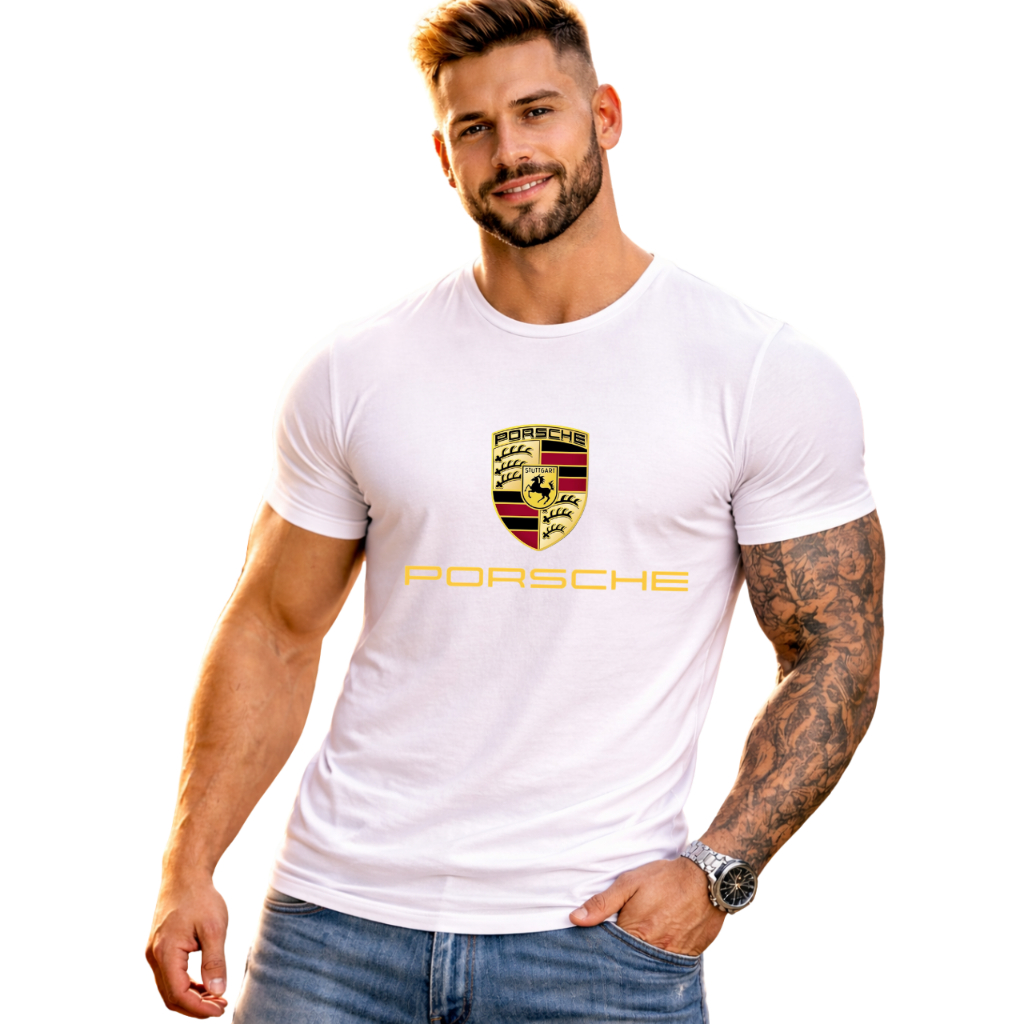 Camiseta Masculina Porsche Estampada Premium Camisa 100% Algodão P ao GG Leve Macio Alta Qualidade