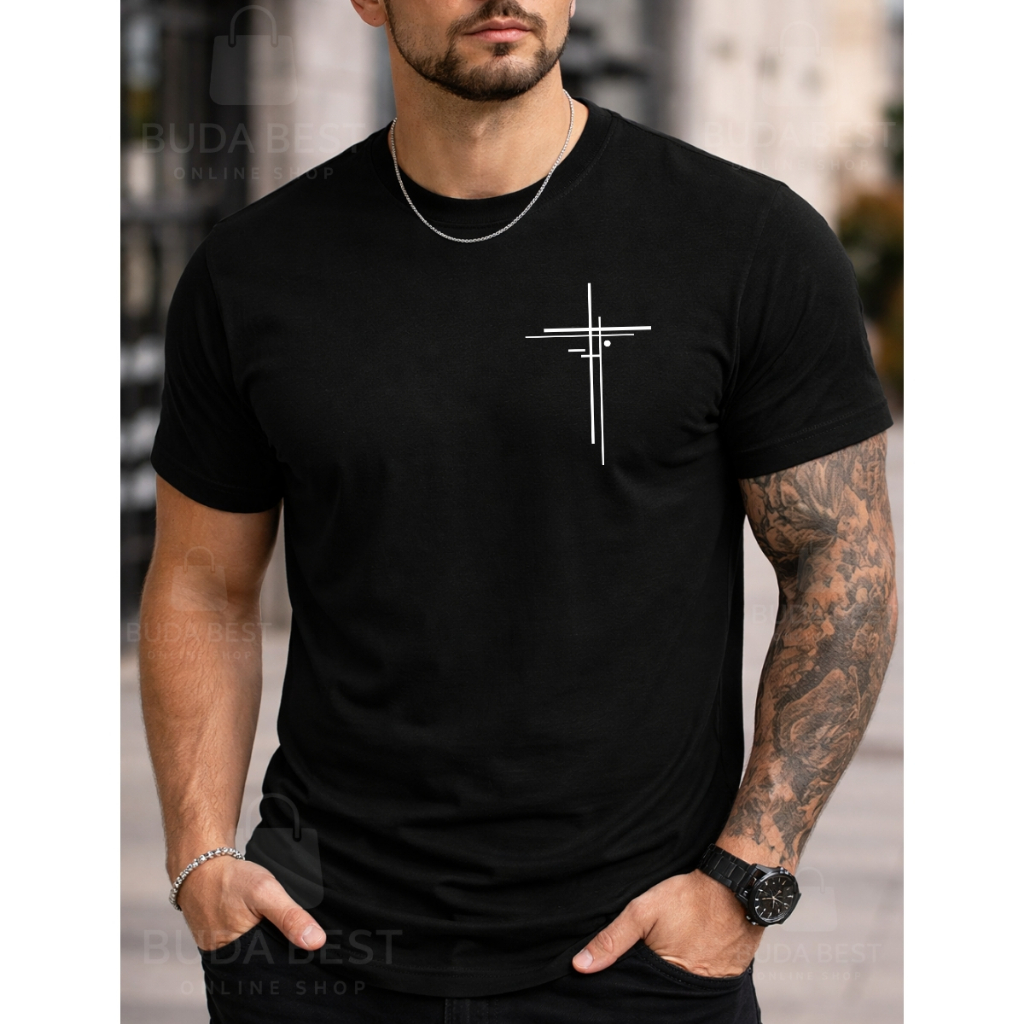 Camiseta Masculina Preta Cruz Minimalista Premium Algodão Confortável Estilo Moderno