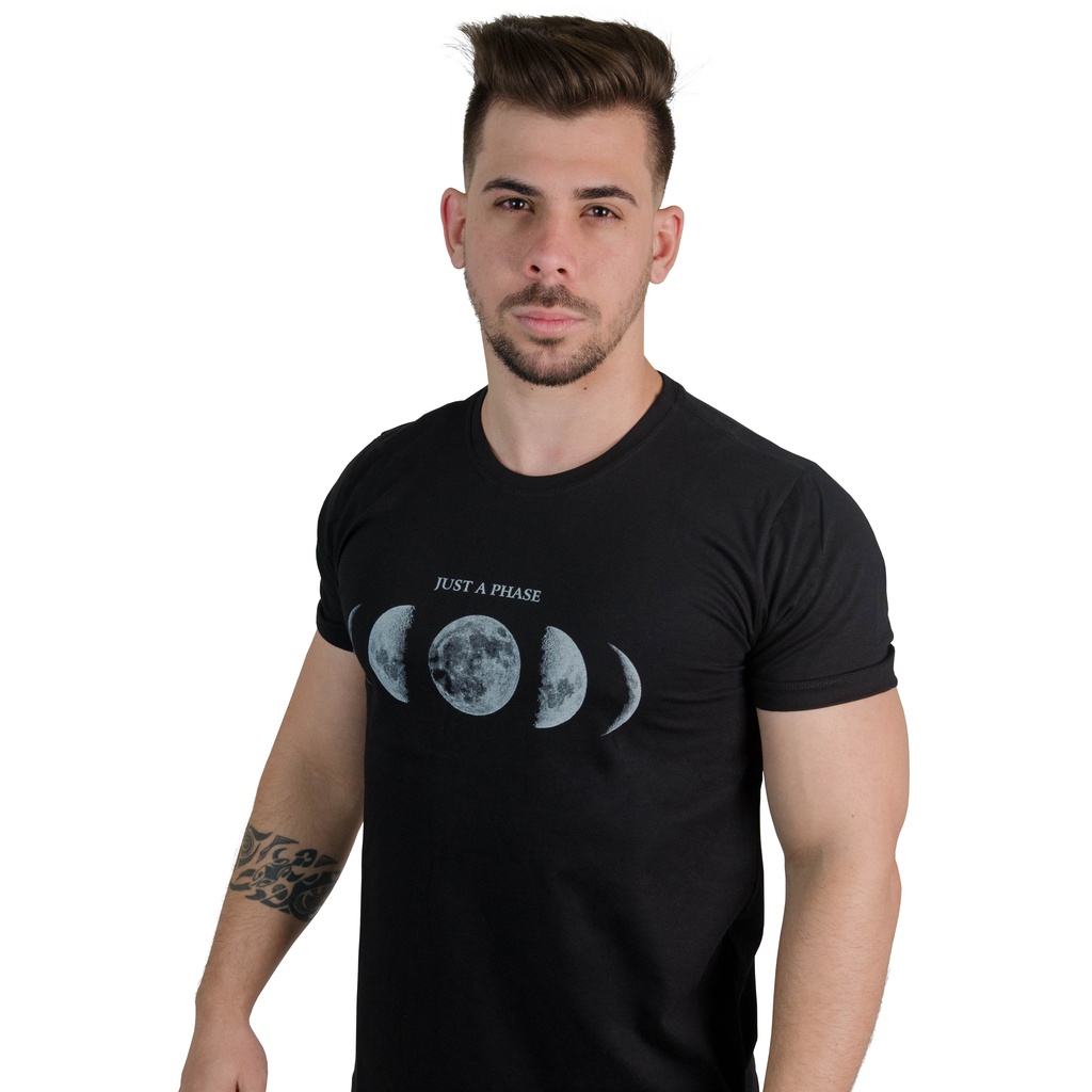 Camiseta Masculina Preta Estampada em Algodão Premium - Blusa para Homem - Camisa com Estampa Fazes da Lua