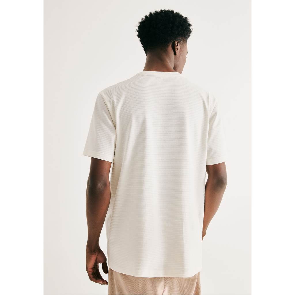 Conforto com um toque de estilo. Esta camiseta é confeccionada em malha de algodão texturizada, que garante um visual moderno e ao mesmo tempo confortável. Com modelagem regular, meia manga e decote redondo, é uma peça versátil que transita com facilidade entre looks casuais e arrumados.Detalhes da peça:Malha de algodãoModelagem regularManga curtaDecote redondo