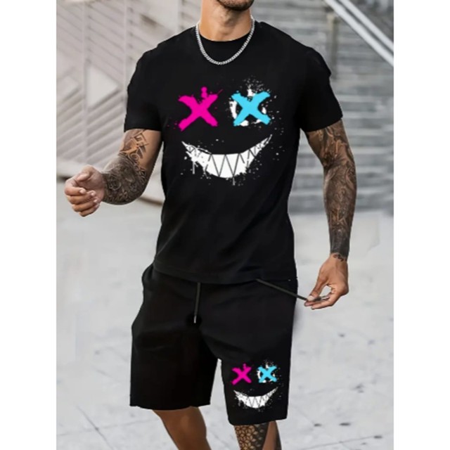 Camiseta Masculina short Smile Streetwear T-shirt Kit Shorts Camisa Style