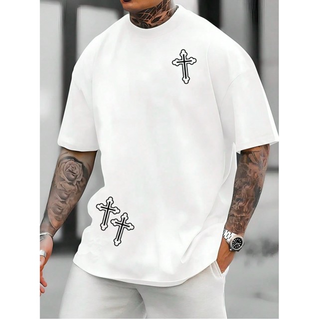 Camiseta Masculina Streetwear 100% Algodão Estampada 3 Cruz Camisa Unissex Premium