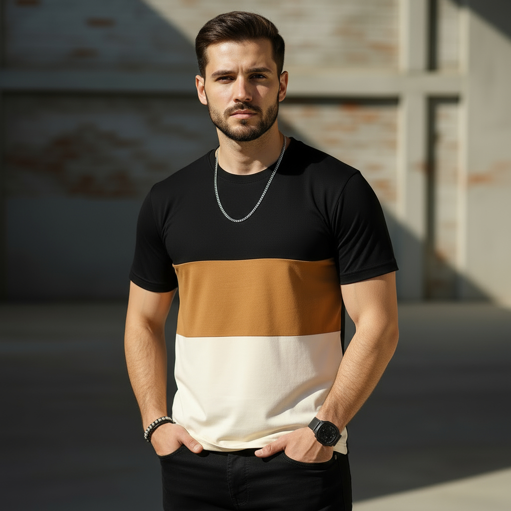 Camiseta Masculina Tricolor 100% Algodão Street Wear
