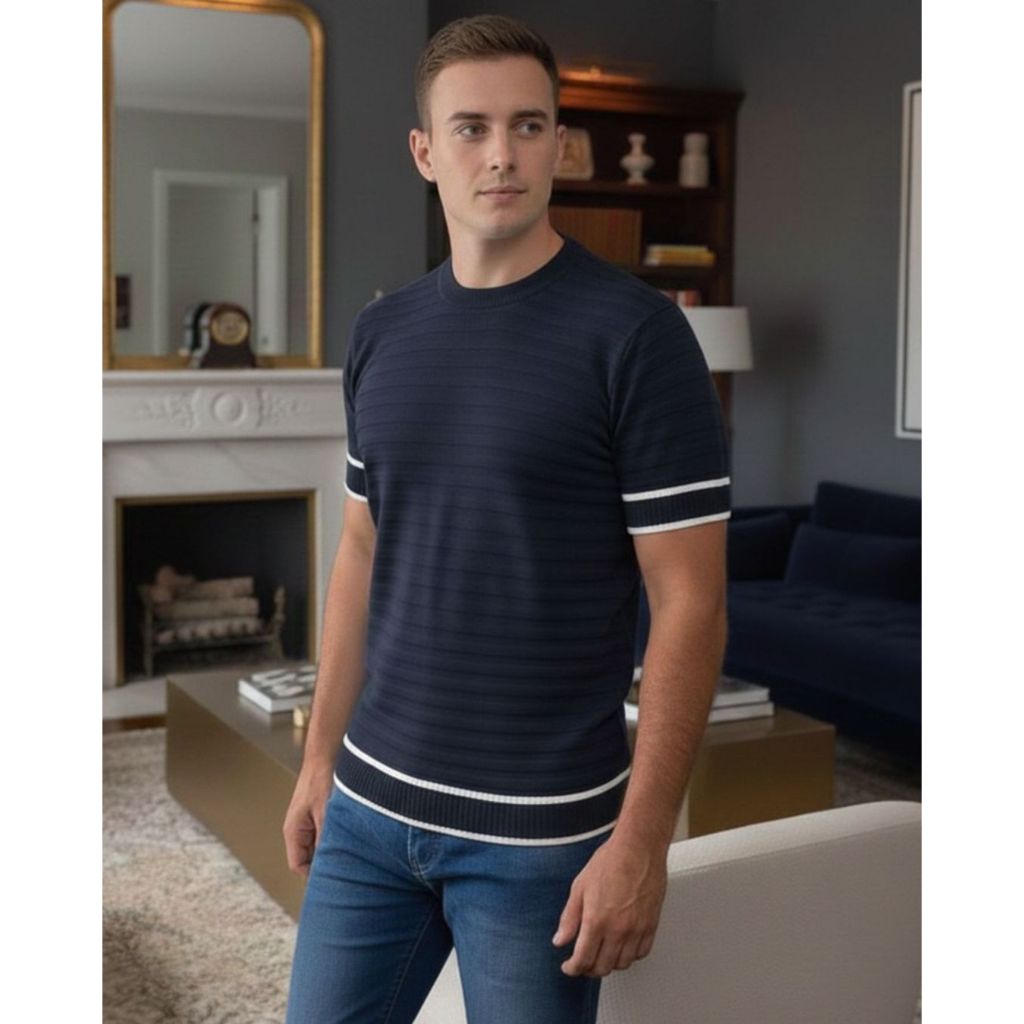 Camiseta Masculina Tricot Doucolor Manga Curta Básica Casual Elegante Tricô Moda Verão