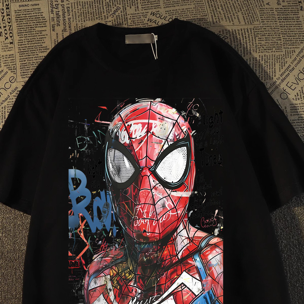 Camiseta Masculina Unissex Oversized Com Estampa De Aranha Estilo Anime T-shirt Algodão Preto