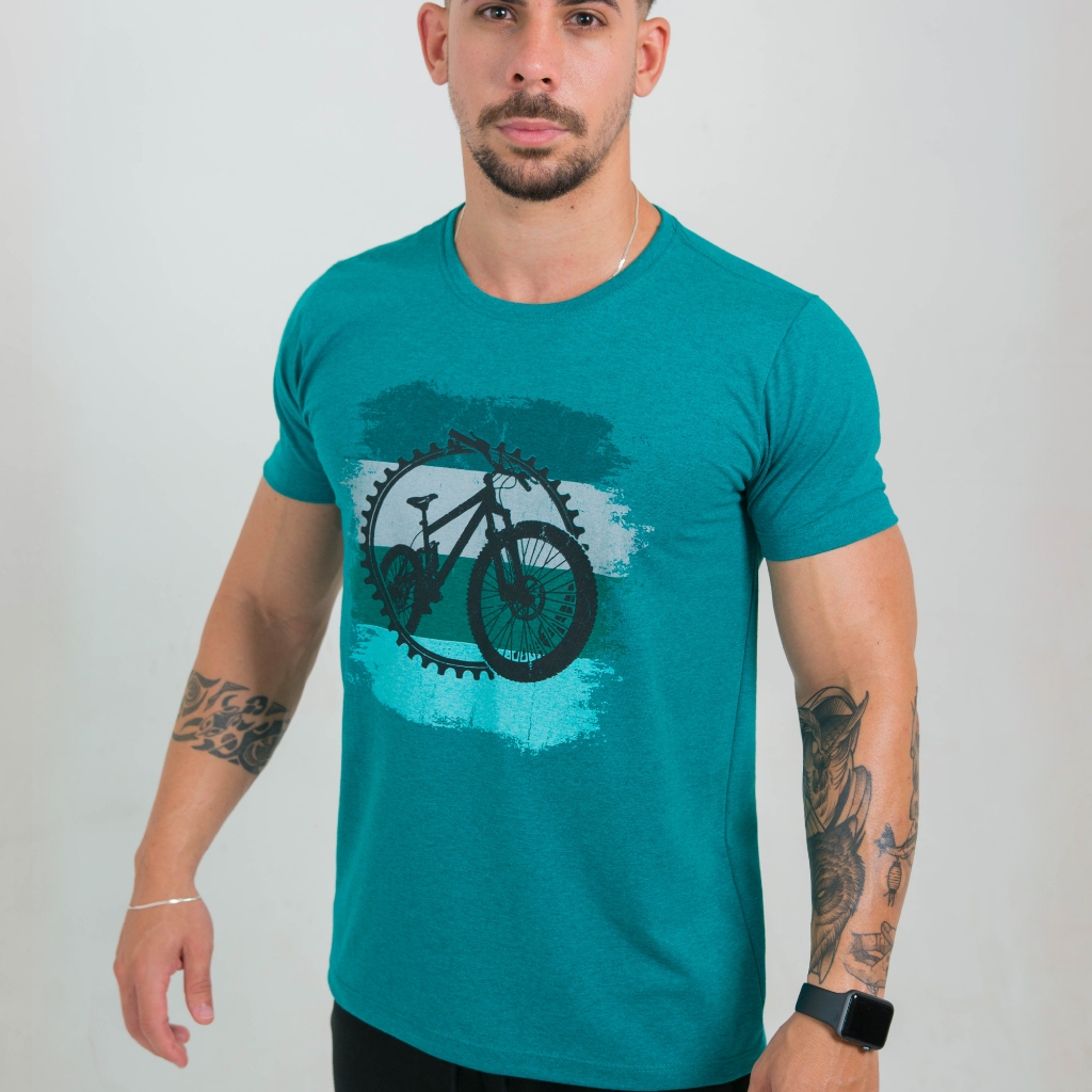 Camiseta Masculina Verde Estampada em Algodão Premium - Blusa para Homem - Camisa com Estampa Bicicleta