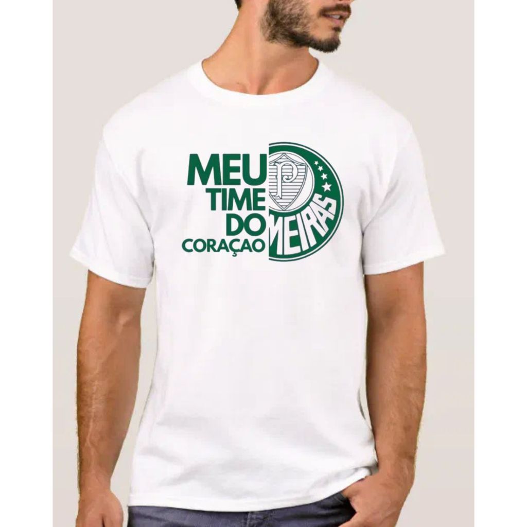 Camiseta MEU TIME DO CORAÇÃO Camisa T shirt Blusa Palmeiras Camisa Branca MEU TIME DO CORAÇÃO