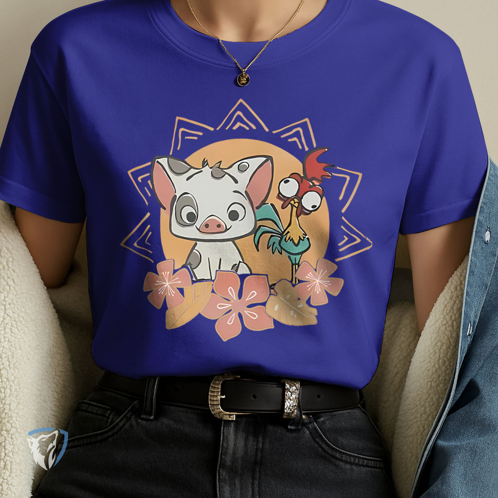 Camiseta Moana | Pua & Hei Hei com Flores do Pacífico