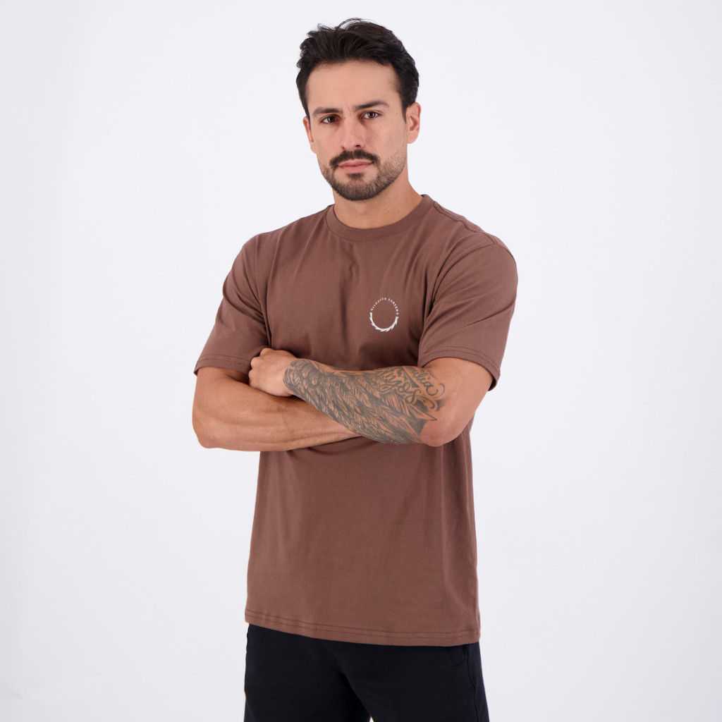 Composição: 100% Algodão Cor Predominante: Marrom Indicado para: Casual Logo: Estampada Gênero: Masculino Origem: Nacional Manga: Curta Gola: Careca Dimensões aproximadas (A x L): P (S): 71 x 52 cm M (M): 73 x 54 cm G (L): 75 x 56 cm GG (XL): 77 x 58 cm
