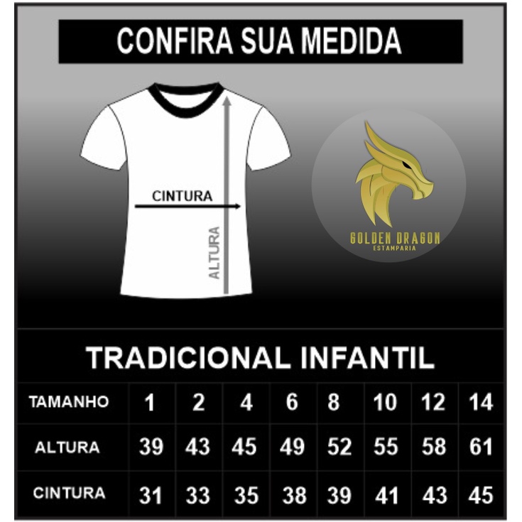 Golden Dragon Estamparia Descrição do Produto: Material da Camiseta : Dry Fit Premium - 100% Poliéster com estampa em Sublimação Total. O Dry Fit Premium é mais fresco, retém menos líquido nas fibras e aumenta o desempenho nas atividades físicas. A combinação de materiais na construção da Fibra determina nosso produto com uma proteção UV 50+ e maior durabilidade para prática de esportes ao ar livre. Processo de Estampa : Sublimação Total ( Alta resolução ) Quantidade : O valor do Anuncio Refere-se a UMA UNIDADE Alta qualidade na estampa. Pode ser passada a ferro, não desbota ao lavar. Medidas da camiseta na imagem do anúncio. Devido ao corte ser manual pode haver uma pequena diferença nos tamanhos. A impressão é feita por um processo chamado sublimação, e com isso pode haver pequena variação nas cores da estampa. Também trabalhamos com camisetas personalizadas. Nos consulte no campo de perguntas. Sobre a Golden Dragon Estamparia : Empresa com sede no Sul de Minas Gerais. Com pouco mais de 2 anos de mercado já atendemos mais de 10 mil clientes em várias cidades do Brasil. Foco na qualidade dos produtos, atendimento personalizado e preço justo. Dúvidas, estamos a disposição. Boas compras.