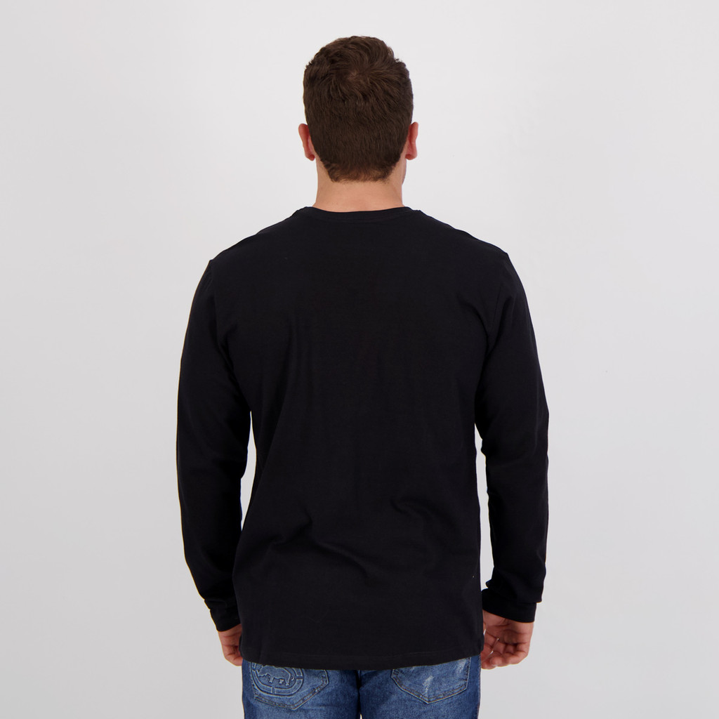 Composição: 100% AlgodãoCor predominante: PretaIndicado para: CasualGênero: MasculinoOrigem: NacionalLogo: EstampadaManga: LongaGola: CarecaDimensões aproximadas (A x L):P: 72 x 52 cmM: 74 x 54 cmG: 76 x 56 cmGG: 78 x 58 cmEG: 82 x 62 cm