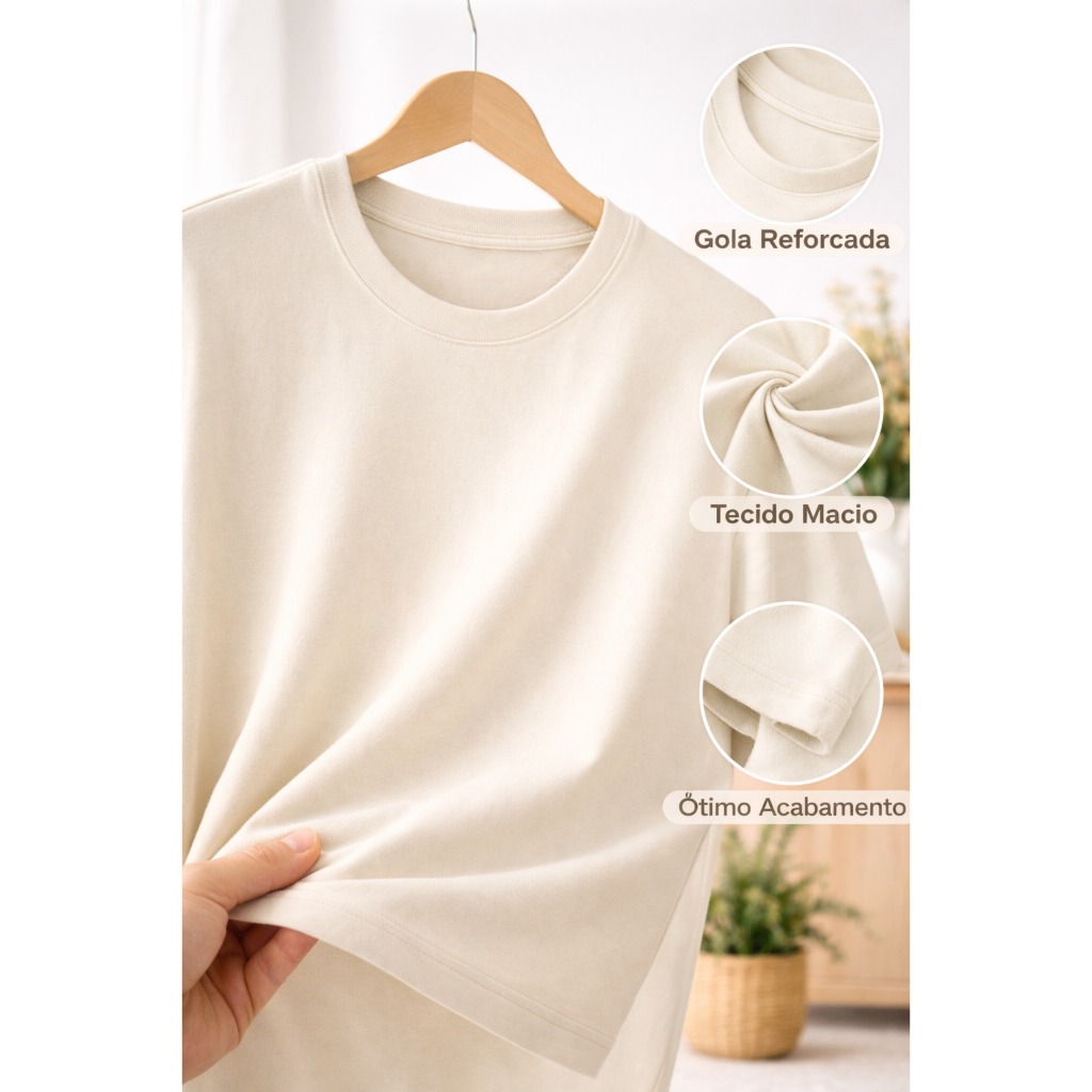 Camiseta Oversized Masculina 100% Algodão Premium Descubra o conforto e a versatilidade da nossa camiseta oversized, confeccionada em malha de algodão premium. Ideal para todas as ocasiões, do estilo casual ao treino na academia. Com um corte amplo e folgado, ela oferece um caimento oversized reto. Composta 100% de algodão Fio 30.1, proporcionando suavidade, conforto e estilo. Sua gola alta oferece proteção, dando um toque de modernidade. Tabela de medidas: (Tamanhos em CM) P: Largura: 53cm/ Comprimento: 70cm/ Largura da Manga: 20cm M: Largura: 56cm/ Comprimento: 72cm/ Largura da Manga: 20,5cm G: Largura: 57cm/ Comprimento: 76cm/ Largura da Manga: 21cm GG: Largura: 58cm/ Comprimento: 78cm/ Largura da Manga: 21,5cm Ao escolher nossas camisetas você garante: Qualidade superior que você pode sentir. Preço acessível para um produto de excelência. Conforto inigualável para o dia a dia. Garanta já a sua camiseta e eleve seu estilo a um novo patamar! Não fique de fora dessa! Enviamos imediatamente para todo o Brasil!