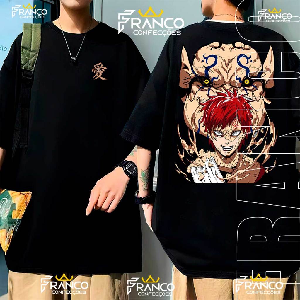 Camiseta Oversized Anime Naruto Gaara Unissex 100% Algodão Serie Streetwear