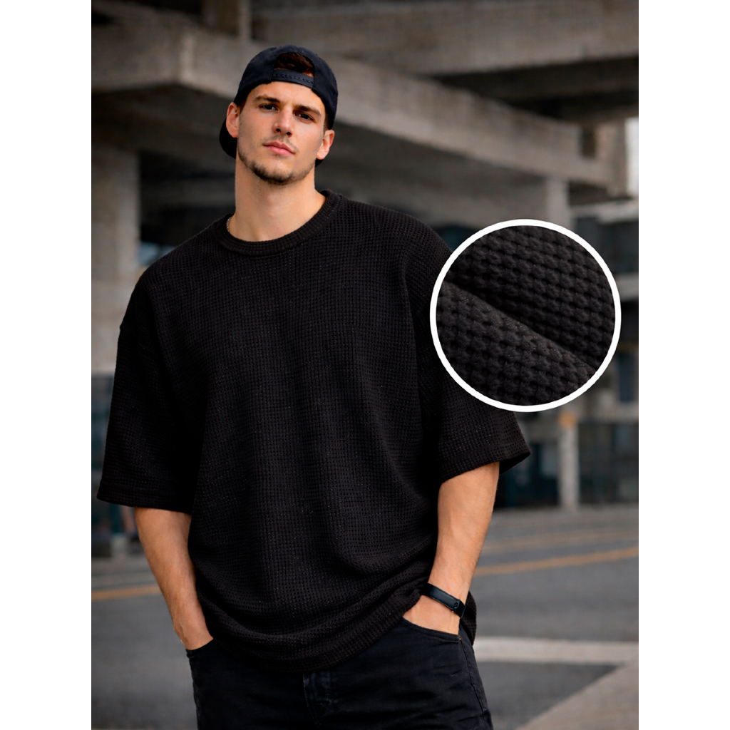 Camiseta Oversized Casual Básica Lisa Reta Texturizada