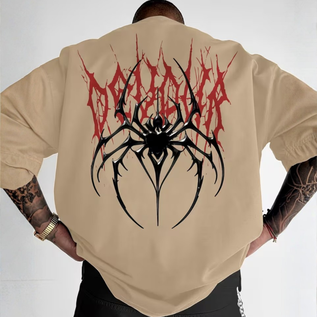 Camiseta Oversized Estampa Dark Spider Tribal Moda Alternativa Larga