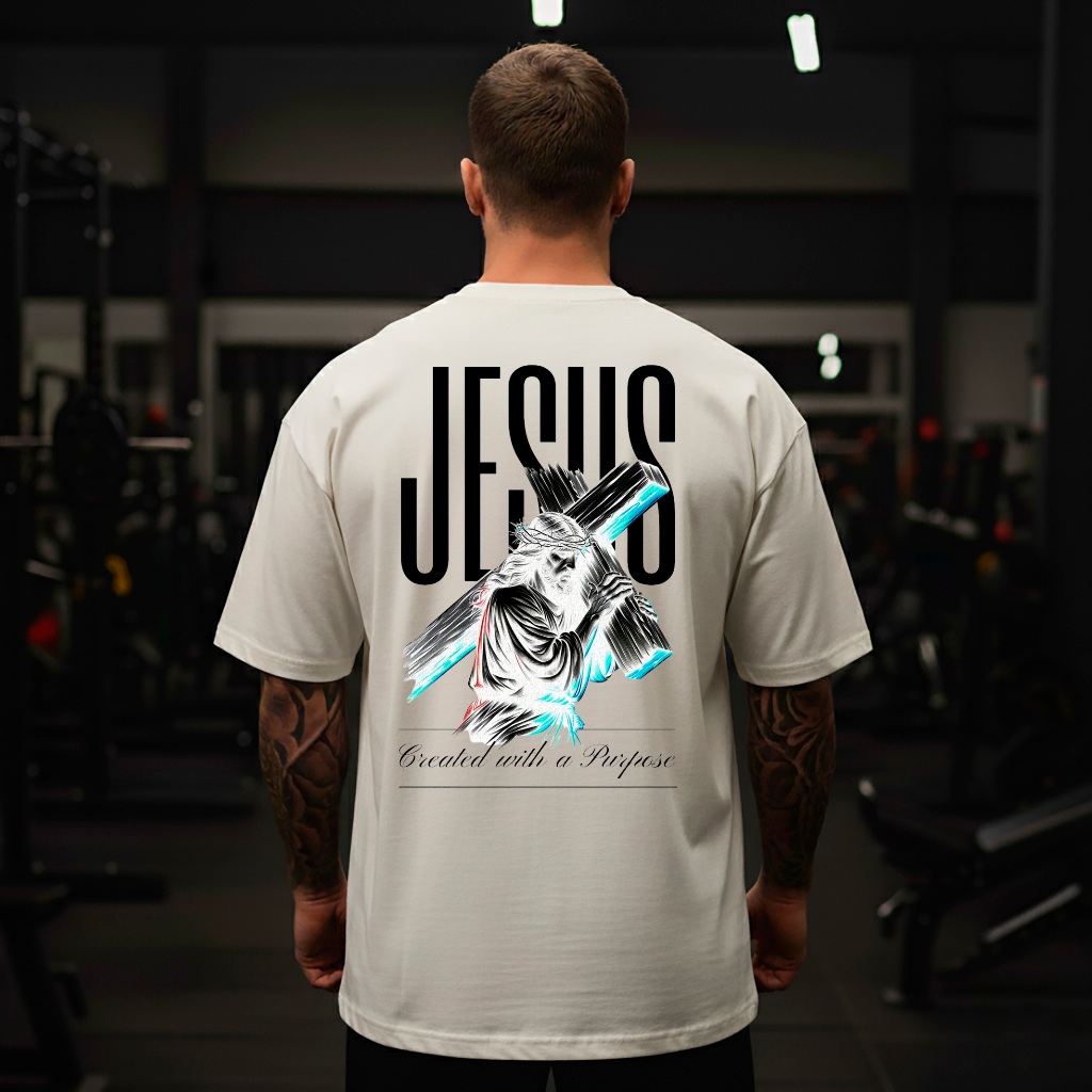 Camiseta Oversized Gola Redonda Fio 30.1 Premium Jesus Cristo Cruz Estampa Cristã Promoção