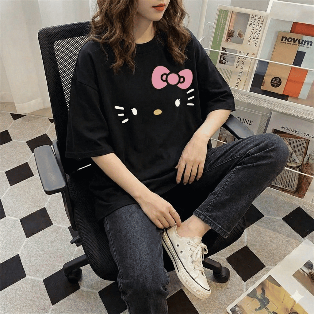 Camiseta Oversized Hello Kitty Carinha Streetwear 100% Algodão Premium Plus Size