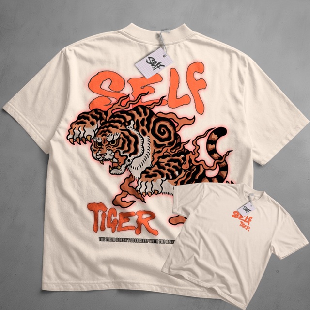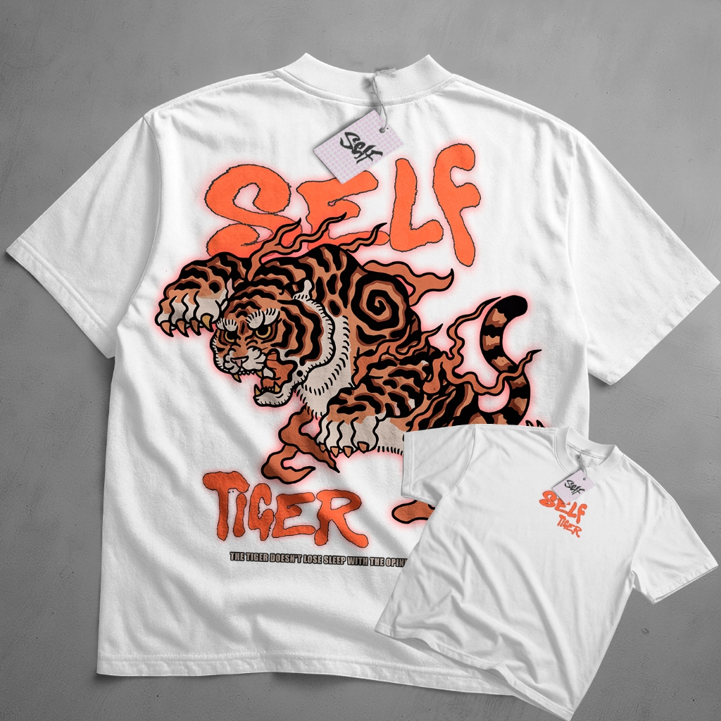 Camiseta Oversized Self Control Tiger Color StreetWear Casual Urban Tigre Desenho Fire Style