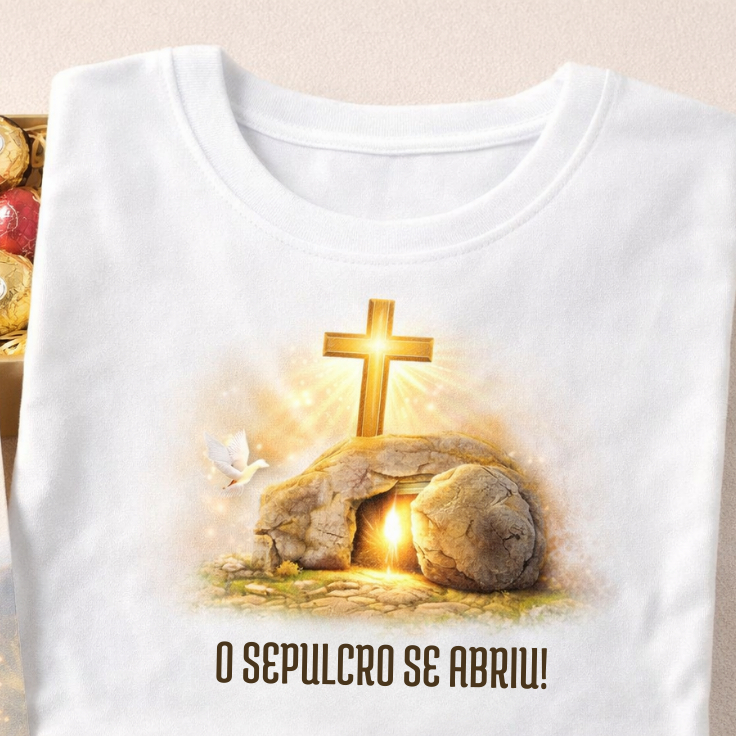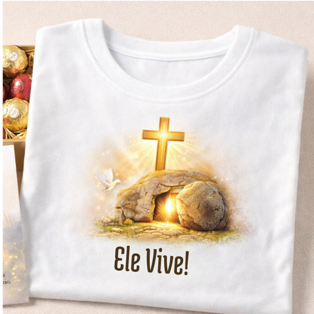 Camiseta Páscoa Cristã Ele Vive – Presente Religioso Páscoa Jesus Ressurreição (envio rápido)