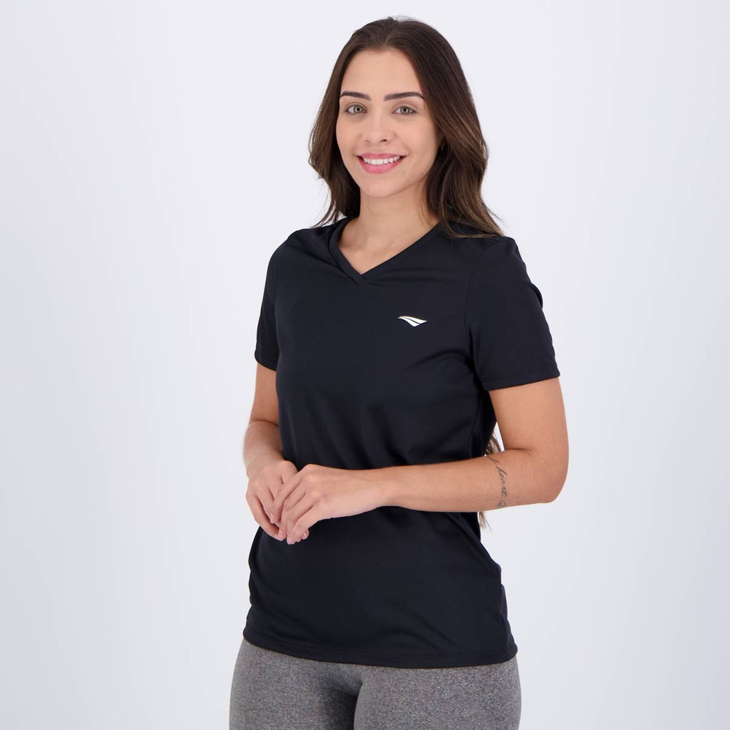 Composição: 100% PoliésterCor predominante: PretaIndicado para: TreinoGênero: FemininoOrigem: NacionalLogo: EstampadaManga: CurtaGola: VDimensões aproximadas (A x L):P: 62 x 41 cmM: 64 x 43 cmG: 66 x 45 cmGG: 68 x 47 cm