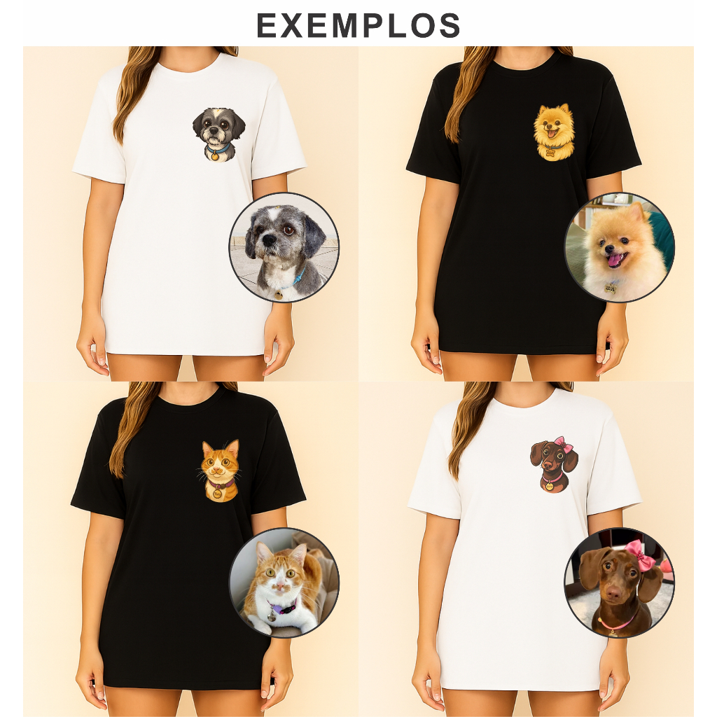 ATENÇÃO: A personalização é de UM PET. Para mais PETS, a compra reverá ser de uma para cada imagem :) Camiseta Personalizada com a Caricatura do Seu PET, com estampa em DTF de altíssima qualidade. Já vai pronta para uso. Leve seu PET em todo lugar que você for com essa linda Camiseta ❤️ Camiseta Oversized com modelagem em medidas maiores nos comprimentos e na altura. ✅ Nossa camiseta possui -Malha premium 100% algodão - Fio 30.1 -Ribana alta e canelada -Reforço ombro a ombro Pra escolher o tamanho ideal, encontre a tabelas de medidas na galeria de fotos e faça uma comparação com uma camiseta que veste bem em seu corpo e que se sinta confortável. Tamanhos: ⦁ Tamanho P 73 cm de altura, 53cm de largura e 22cm mangas ⦁ Tamanho M 75 cm de altura, 55cm de largura e 23cm mangas ⦁ Tamanho G: 77 cm de altura, 57cm de largura e 24cm mangas ⦁ Tamanho GG: 79 cm de altura, 59cm de largura e 25cm mangas COMO NOS ENVIAR A FOTO PARA PERSONALIZAÇÃO? Após a realização da compra, nos envie IMEDIATAMENTE NO CHAT a foto do seu PET, com boa qualidade, ângulo e iluminação, para que possamos enviar como ficará a arte para você aprovar. A imagem da estampa será feita com base nela, então capriche na qualidade :) ⚠️ATENÇÃO⚠️ ⦁Não adicionamos frases nem nenhum outro elemento que não seja a caricatura do PET. ⦁ Personalizamos com ATÉ 2 Pets (DOIS PETS) por camiseta. NÃO conseguimos incluir mais que isso em uma única camiseta. ⦁ Realizamos a elaboração da imagem usando INTELIGÊNCIA ARTIFICIAL, dessa maneira não conseguimos alterar detalhes mínimos como deixar o dentinho um pouco para fora, colocar um degradê na sobrancelha, mudar a posição do rabinho e coisas do tipo. Enviamos a arte antes para aprovação, porém é de extrema importância atentar-se a isso antes da compra. ⦁ Por ser uma camiseta totalmente personalizada, NÃO ACEITAMOS DEVOLUÇÕES DEVIDO A TAMANHOS E QUAISQUER OUTRAS QUESTÕES QUE NÃO SEJAM DEFEITO DE FABRICAÇÃO. ⦁ Por ser uma camiseta personalizada, temos um prazo de produção de até 5 DIAS ÚTEIS após o pedido, logo será enviada dentro desde prazo :) ⦁⦁⦁Prazo de produção de 5 dias úteis após a compra⦁⦁⦁ Caso tenha alguma dúvida, estamos à disposição para atendê-lo pelo CHAT :) .