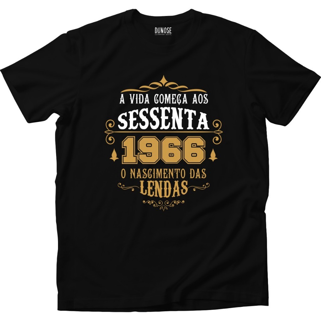 Camiseta Personalizada Estampa Nascimento Lendas 1966 60 Anos Aniversário Data 100% Algodão Masculina Unissex