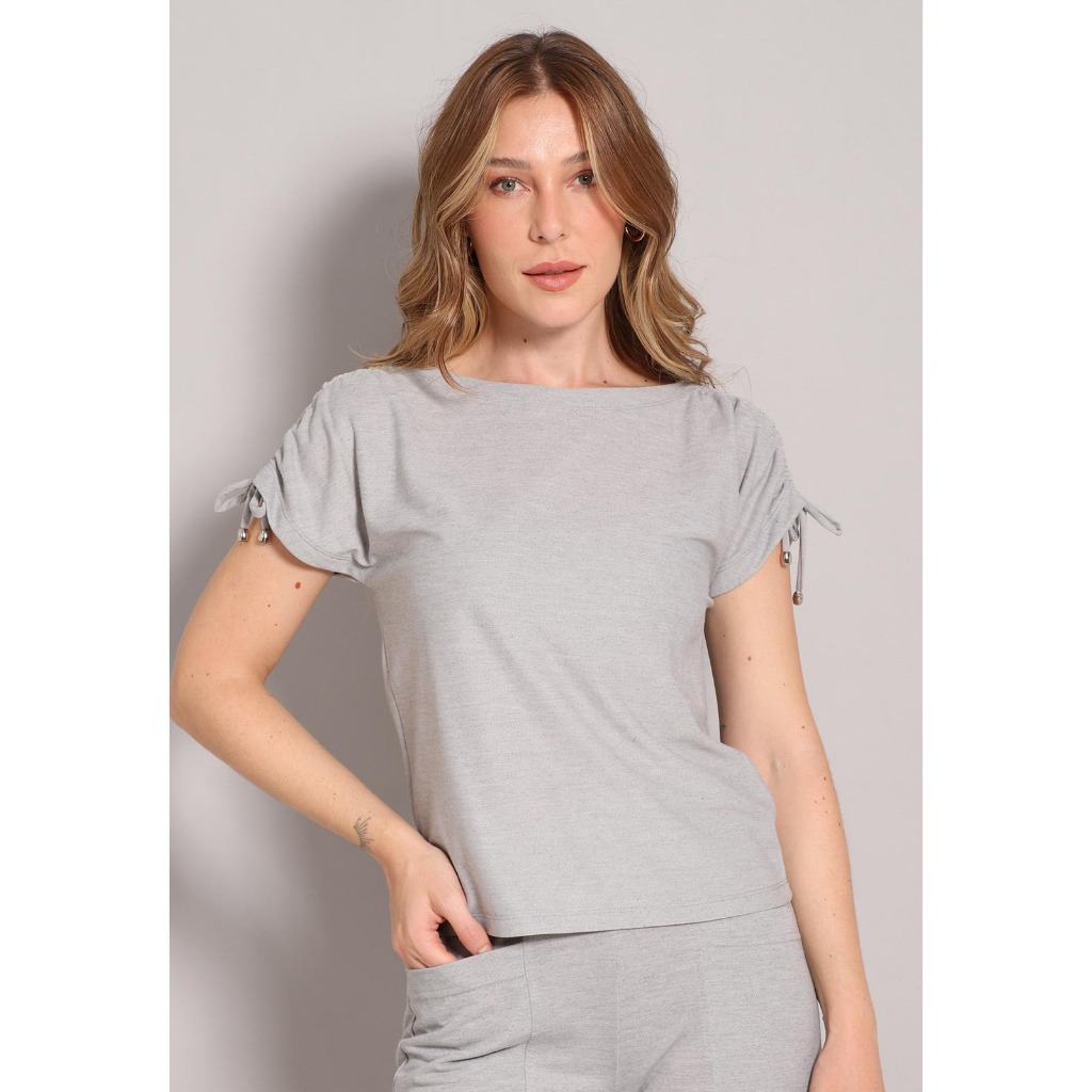 Camiseta Piquet Cordão De Ajuste No Ombro Linha Premium Confortável e Elegante