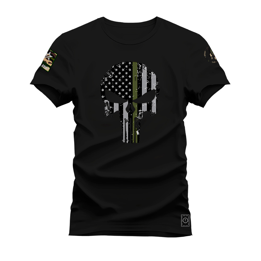 Camiseta Plus Size Algodão Estampada Moda StreetWear Caveira Urban