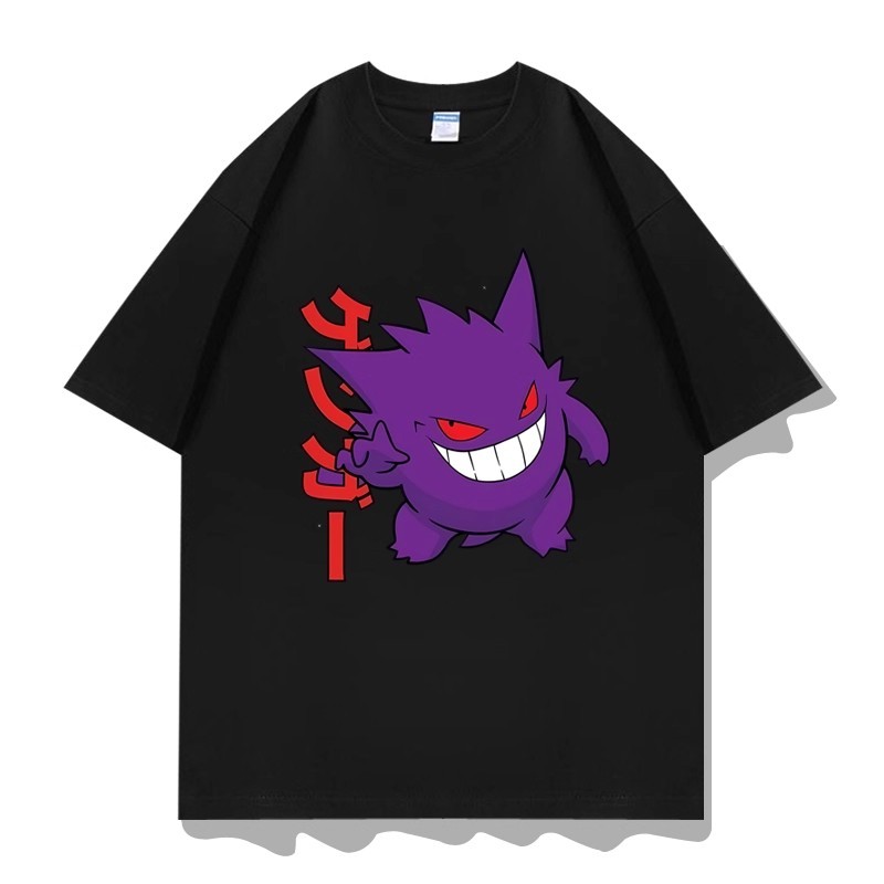 Camiseta plus size com estampa do Gengar, apresentando personagens de anime/Pokémon, 100% algodão, gola redonda.