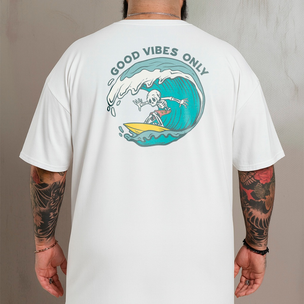 camiseta plus size estampada de algodão penteado masculina caveira surf