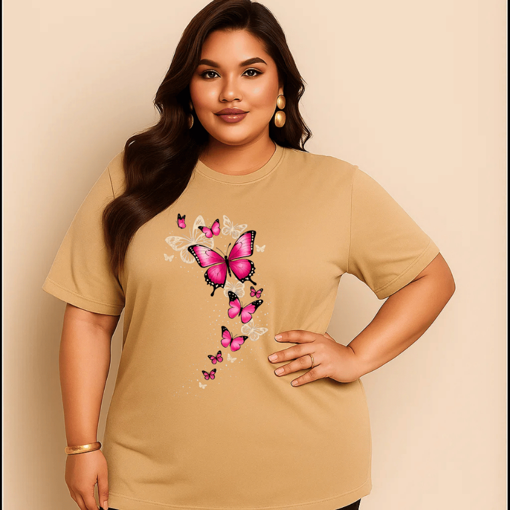 Camiseta Plus Size Feminina Estampada Borboletas Do P Ao G5 Academia Treino 100% Algodão Premium Verão