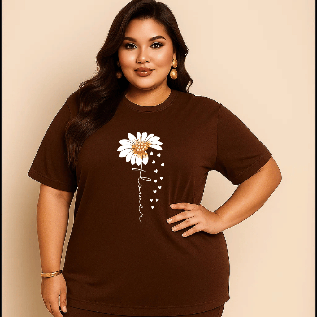 Camiseta Plus Size Feminina Estampada Do P Ao G5 Girassol Academia Treino 100% Algodão Premium Verão
