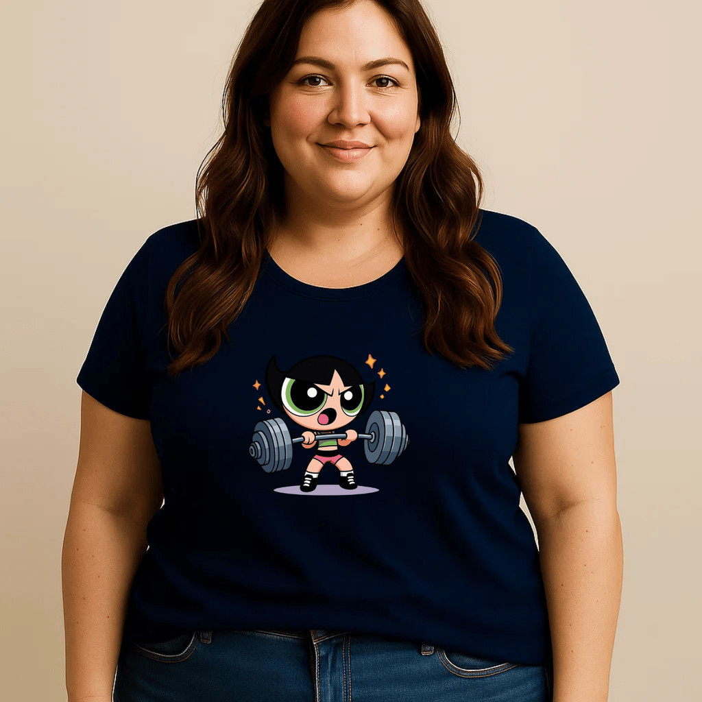 Camiseta Plus Size Feminina Estampada Docinho Super Poderosas Academia 100% Algodão Camisa