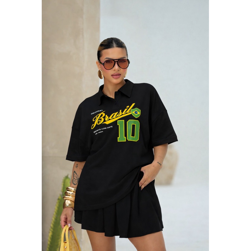 Camiseta polo feminina Oversized Brasil 10 malha suedine premium 100% algodão copa REGATA VIRGÍNIA BRASIL