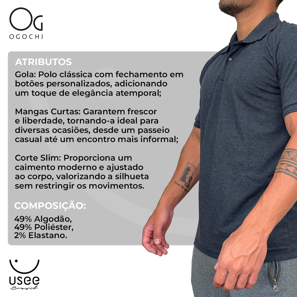Camiseta Polo Manga Curta Slim Malha Piquet Casual Confortável Ogochi