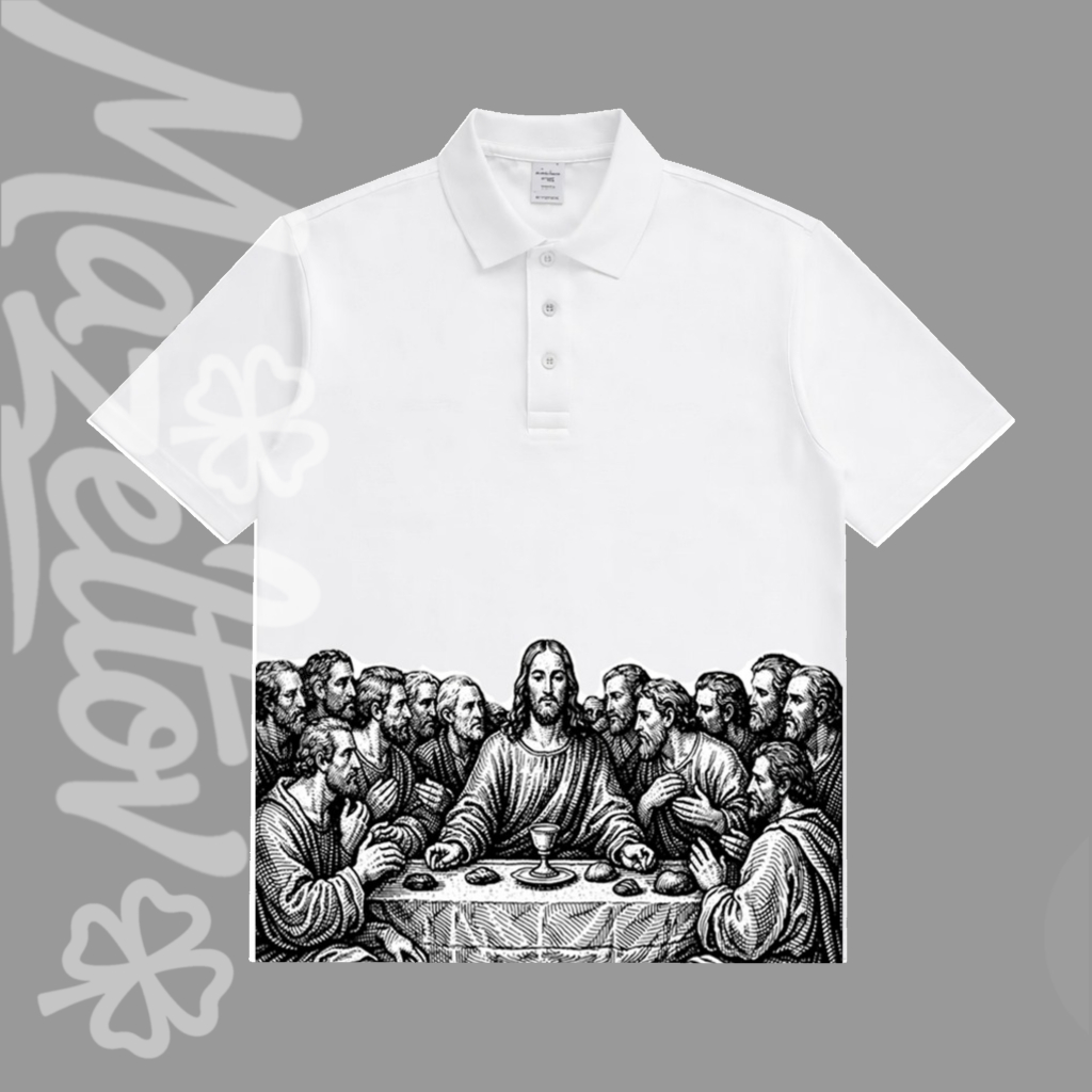 Camiseta Polo Unisex Estampa Religiosa Santa Ceia