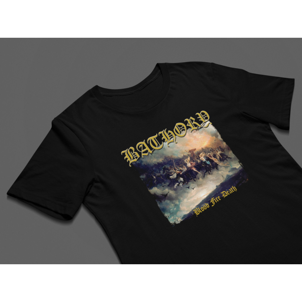 [Camiseta Premium em Algodão Puro]GXG Blusa Camisa Camiseta Unissex Álbum Blood Fire Death Bathory