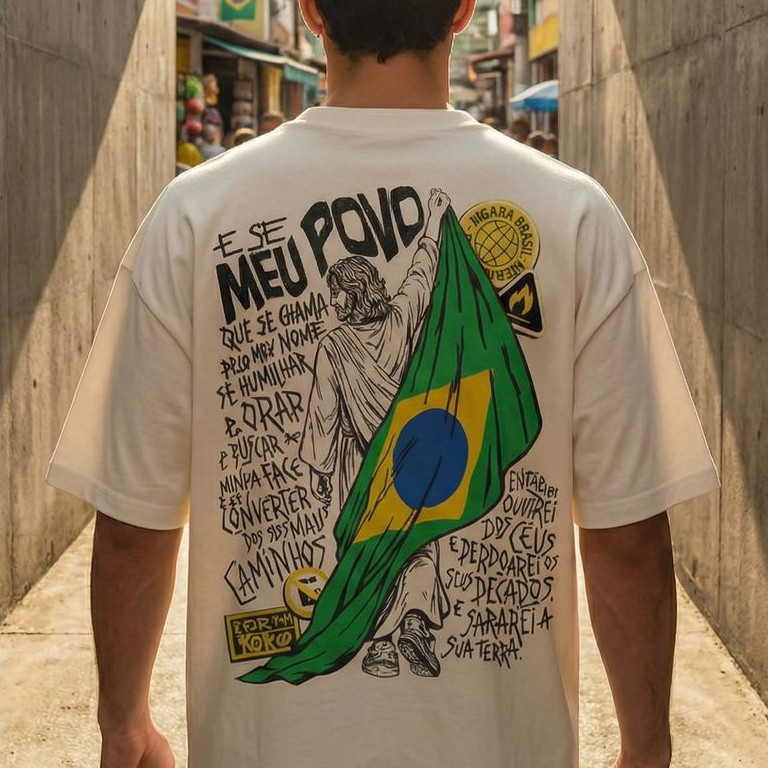 [Camiseta Premium em Algodão Puro]GXG Camiseta Brasil Pátria Jesus Patriotas Algodao Estampada Versículo Gospel Casual
