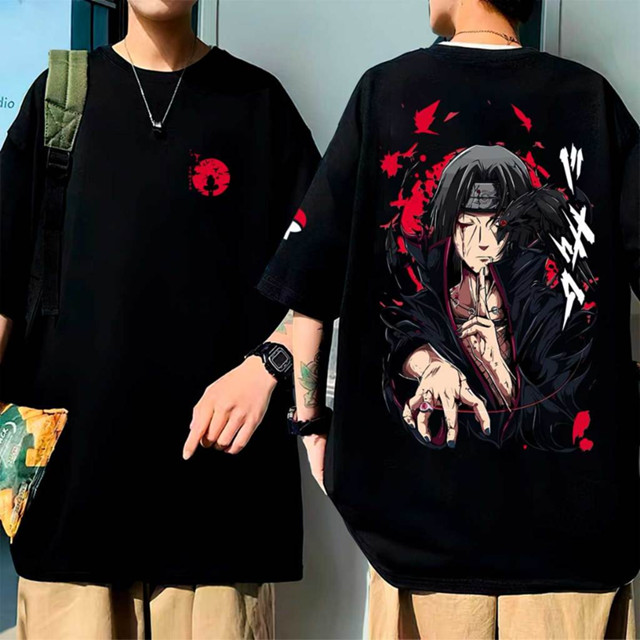 [Camiseta Premium em Algodão Puro]GXG Camiseta Ovesized Itachi Naruto Corvo Uchiha Kunai Camisa Estampada 100% Algodão U