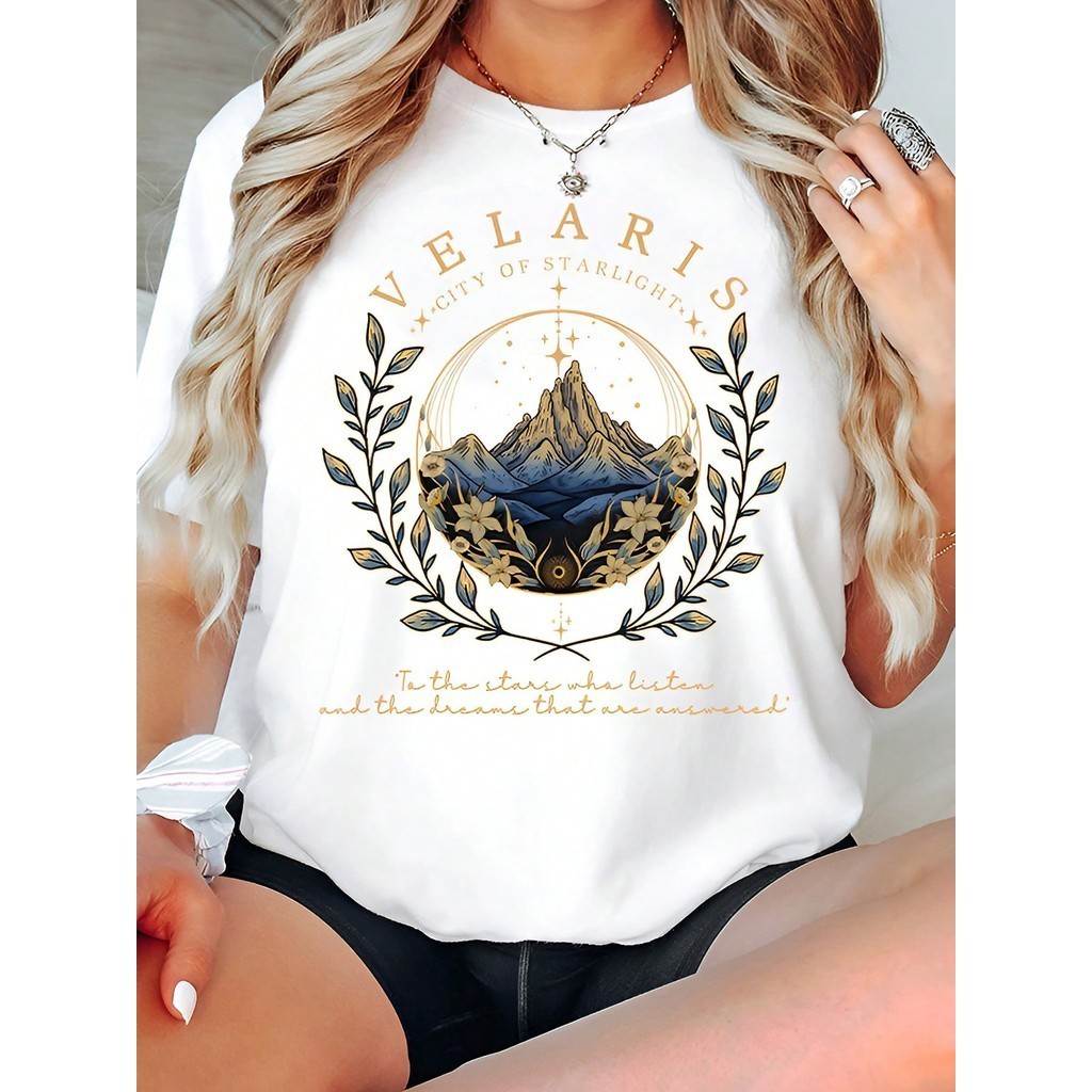 [Camiseta Premium em Algodão Puro]SISI Camiseta Feminina de Manga Curta e Gola Redonda blusa estampada t-shirt