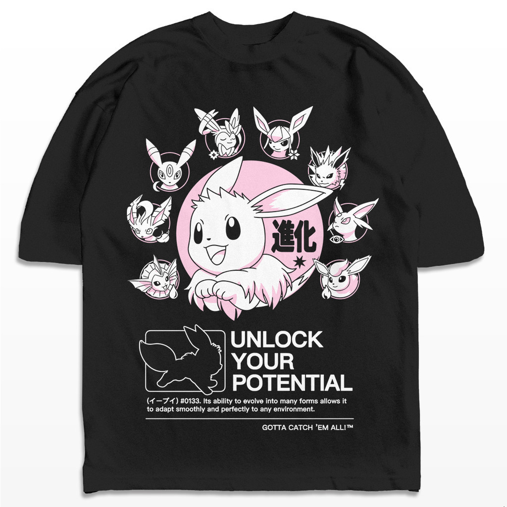 [Camiseta Premium em Algodão Puro]SISICamiseta Oversized Evee Evoluções Pokemon Potencial Harajuku