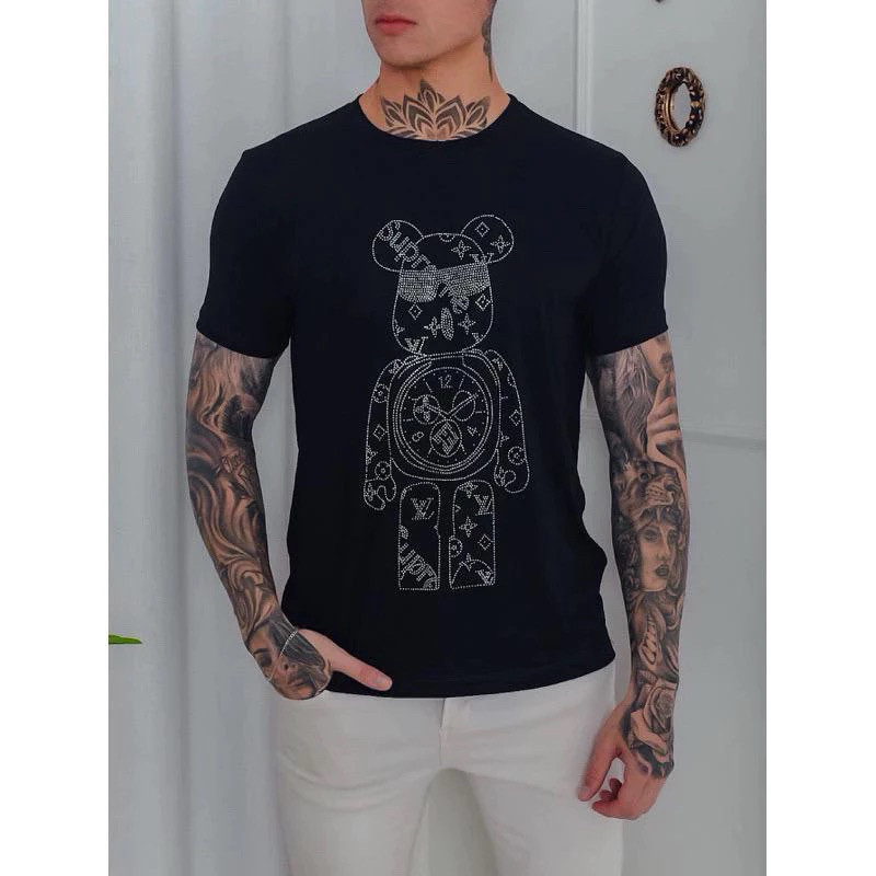 [Camiseta Premium em Algodão Puro]VU Camiseta masculino com pedraria nova marcas TOP